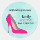 Pegatinas de negocios personalizados con zapatos de tacón rosado. Está situado sobre un fondo acuático verde menta. Moda y glamour.
