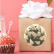 Presenta una rosette de arco de cinta en un aspecto purpurina de oro.