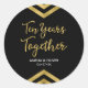 Este elegante pegatina redondeado presenta un moda geométrica de chevron y la palabra "Ten Years Together" (Diez años juntos) en oro falso contra un fondo negro. Es genial para una celebración del décimo aniversario. Consulta aquí las invitaciones y los elementos coincidentes http://www.zazzle.com/collections/modern_faux_gold_chevron_celebration_collection-119531050277382712?rf=238364477188679314 Personalízalo con tus detalles reemplazando el texto del marcador de posición. Para obtener más opciones, haga clic en el botón "Personalizar". *Tenga en cuenta que la marca de agua Zazzle que aparece en la vista previa del zoom NO aparecerá en el producto impreso final. © Rosewood y Citrus