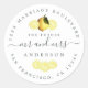 Moda, moderno y sencillo retorno boda se dirige al pegatina redondo clásico con el texto el futuro Sr. y la Sra. en un guión elegante fuera de negro sobre un fondo blanco con un toque elegante de bonito limón color agua y corte de limón. Simplemente agrega tu nombre y dirección. Diseñado exclusivamente para usted por Happy Dolphin Studio. Si necesita ayuda o productos coincidentes, póngase en contacto con nosotros en happydolphinstudio@outlook.com. ¡Estamos encantados de ayudarle a hacer de su boda el día más hermoso!