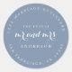 Moda, boda moderno y simple retorno dirección pegatina redondo clásico con el texto el futuro Sr. y Sra. en blanco elegante caligrafía manuscrita manuscrita sobre un fondo azul vintage. Simplemente agrega tu nombre y dirección. Diseñado exclusivamente para usted por Happy Dolphin Studio. Si necesita ayuda o productos coincidentes, póngase en contacto con nosotros en happydolphinstudio@outlook.com. ¡Estamos encantados de ayudarle a hacer de su boda el día más hermoso!