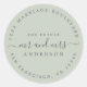 Moda, retorno boda moderno y simple se dirige al pegatina redondo clásico con el texto el futuro Sr. y la Sra. en un elegante guión negro sobre un fondo verde pastel. Simplemente agrega tu nombre y dirección. Diseñado exclusivamente para usted por Happy Dolphin Studio. Si necesita ayuda o productos coincidentes, póngase en contacto con nosotros en happydolphinstudio@outlook.com. ¡Estamos encantados de ayudarle a hacer de su boda el día más hermoso!