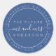 Moda, boda moderno y simple retorno se dirige al pegatina redondo clásico con el texto el futuro Sr. y la Sra. en blanco elegante guion sobre un fondo azul clásico. Simplemente agrega tu nombre y dirección. Diseñado exclusivamente para usted por Happy Dolphin Studio. Si necesita ayuda o productos coincidentes, póngase en contacto con nosotros en happydolphinstudio@outlook.com. ¡Estamos encantados de ayudarle a hacer de su boda el día más hermoso!