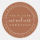 Moda, boda moderno y simple retorno se dirige al pegatina redondo clásico con el texto el futuro Sr. y la Sra. en blanco y elegante caligrafía manuscrita manuscrita sobre un fondo de terracota. Simplemente agrega tu nombre y dirección. Diseñado exclusivamente para usted por Happy Dolphin Studio. Si necesita ayuda o productos coincidentes, póngase en contacto con nosotros en happydolphinstudio@outlook.com. ¡Estamos encantados de ayudarle a hacer de su boda el día más hermoso!