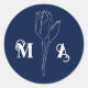 Pegatina Redonda Moda Mínimo de Iniciales Florales Azules de Median