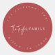 Estos modernos pegatinas de dirección circular de la familia roja de moda son perfectos para una elegante tarjeta de vacaciones o un sobre de invitación. Este sencillo diseño de boho presenta caligrafía clásica sofisticada en tonos rojos y blancos tradicionales.