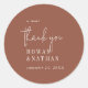 Esta moderna terracota de moda, con un dulce gracias pegatina redondo clásico, es perfecta para una simple recepción nupcial. El diseño del boho del desierto presenta una tipografía bohemia rústica única y elegante en un color de roya naranja quemado. Personalice las etiquetas del pegatina con sus nombres y la fecha. Estos pegatinas se pueden usar para hacer productos horneados, o para un favor nupcial de dulces.