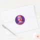 pegatina redondo clásico de moda morada con una mujer elegante, cabello y gafas rosados, y nombre de personalizable. Para cartas de moda, regalos, para escuela y oficina.