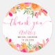 Moderna moda color de agua floral giratoria giratoria ducha de novia gracias pegatina con naranja brillante, melocotón, flores rosadas y verdes ramo y elegante letra de guión.