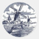 Pegatina Redonda Moda Ornate Antique Holandés Delft Blue Windmill