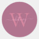 Pegatina Redonda Moda Preppy Nombre Monogramado Rosa + Inicial