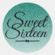 Pegatina Redonda Moda purpurina verde oscuro Dulce 16