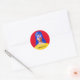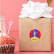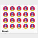 pegatina redondo clásico de moda roja con una mujer elegante, cabello y gafas azules, y nombre de personalizable. Para cartas de moda, regalos, para escuela y oficina.