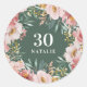 Pegatina Redonda Moda rosa de color de agua giratoria floral cumple