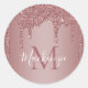 Rosa Girly Purpurina de espuma de oro goteo Monograma Pegatinas de círculo redondo con goteo de purpurina de oro fino rosa/rosa sobre un fondo de moda con su personalizado monograma y nombre. Póngase en contacto con nosotros en cedarandstring@gmail.com si necesita ayuda con el diseño o productos de coincidencia.