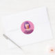 pegatina redondo clásico de moda rosa con una mujer elegante, pelo y gafas púrpura, y nombre de personalizable. Para cartas de moda, regalos, para escuela y oficina.