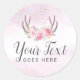 Pegatina Redonda Moda Rubor Pink Gold Marble Rustic Floral Antlers