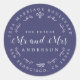 Moda, decoración moderna y sencilla de retorno boda dirección pegatina redondo clásico con el texto el futuro Sr. y la Sra. en blanco elegante caligrafía de escritura sobre un fondo azul marino con laureles y otros detalles decorativos rústicos. Simplemente agrega tu nombre y dirección. Diseñado exclusivamente para usted por Happy Dolphin Studio. Si necesita ayuda o productos coincidentes, póngase en contacto con nosotros en happydolphinstudio@outlook.com. ¡Estamos encantados de ayudarle a hacer de su boda el día más hermoso!