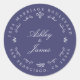 Moda, retorno boda moderno y simple se dirige al pegatina redondo clásico con el texto el futuro Sr. y la Sra. en blanco elegante con un fondo azul marino adornado con laureles y otros detalles decorativos rústicos. Simplemente agrega tu nombre y dirección. Diseñado exclusivamente para usted por Happy Dolphin Studio. Si necesita ayuda o productos coincidentes, póngase en contacto con nosotros en happydolphinstudio@outlook.com. ¡Estamos encantados de ayudarle a hacer de su boda el día más hermoso!