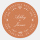 Moda, retorno boda moderno y simple se dirige al pegatina redondo clásico con el texto el futuro Sr. y la Sra. en blanco elegante sobre un fondo naranja quemado adornado con laureles y otros detalles decorativos rústicos. Simplemente agrega tu nombre y dirección. Diseñado exclusivamente para usted por Happy Dolphin Studio. Si necesita ayuda o productos coincidentes, póngase en contacto con nosotros en happydolphinstudio@outlook.com. ¡Estamos encantados de ayudarle a hacer de su boda el día más hermoso!