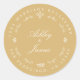 Moda, decoración moderna y sencilla de retorno boda se dirige al pegatina redondo clásico con el texto el futuro Sr. y la Sra. en blanco elegante con un fondo dorado amarillo brillante adornado con laureles y otros detalles decorativos rústicos. Simplemente agrega tu nombre y dirección. Diseñado exclusivamente para usted por Happy Dolphin Studio. Si necesita ayuda o productos coincidentes, póngase en contacto con nosotros en happydolphinstudio@outlook.com. ¡Estamos encantados de ayudarle a hacer de su boda el día más hermoso!