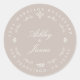 Moda, retorno boda moderno y sencillo se dirige al pegatina redondo clásico con el texto el futuro Sr. y la Sra. en blanco y elegante guion sobre un fondo gris de mañana adornado con laureles y otros detalles decorativos rústicos. Simplemente agrega tu nombre y dirección. Diseñado exclusivamente para usted por Happy Dolphin Studio. Si necesita ayuda o productos coincidentes, póngase en contacto con nosotros en happydolphinstudio@outlook.com. ¡Estamos encantados de ayudarle a hacer de su boda el día más hermoso!