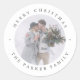Estos elegantes stickers de Navidad de estilo rústico muestran su foto personal con un simple fondo blanco y un texto clásico y gris oscuro que dice "Feliz Navidad", pero puede cambiarla a cualquier saludo que prefiera. ¡El perfecto aspecto minimalista para tus tarjetas de vacaciones y regalos!