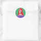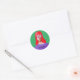 pegatina redondo clásico de moda verde con una mujer elegante, cabello y gafas rojos, y nombre de personalizable. Para cartas de moda, regalos, para escuela y oficina.
