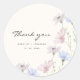 Añade un toque final encantador a tus favores de boda, sobres o regalos con este Pegatina de Boda Floral Gracias. Diseñado en formato redondo, cuenta con flores silvestres de color suave en tonos pastel y un texto de escritura elegante que dice "Gracias", junto con nombres de personalizable y fecha. El diseño delicado y romántico es perfecto para bodas de primavera o jardín y le añade un elemento personalizado y sincero a su celebración.