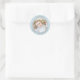 Moderno pegatina de cumpleaños boho con ambiente costero. Mostrando un cheque de gingham azul y blanco para un lindo cumpleaños de verano. 1.ᵉʳ cumpleaños feliz Personalizado pegatinas de foto para la fiesta de cumpleaños de su hijo o hija. Cuentan con un lindo texto y una imagen personalizables. Perfecto para invitaciones y golosinas de bolsos fiestas.