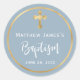Modern Light Dusty Blue Gold Cross Boy Baptism Round Sticker. This modern baptism favor sticker can be used on wrapped gifts, favor bags and is a great way to thank your baptism or christening guests.