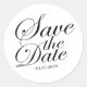 Modern Elegant Custom Save The Date | Black Text Classic Round Sticker.