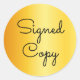 Crea tus propios pegatinas de "copia firmada" con un fondo de gradiente dorado amarillo brillante. Gradiente oscuro dorado. Personalizar el estilo de letra, color y tamaño según sea necesario. Fondo gráfico digital.