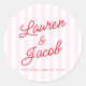 Pegatina Redonda Modern Minimal Minimalist Red Pink Stripes Wedding