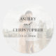Create your own custom photo wedding stickers featuring your names and wedding date in modern elegant typography.