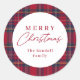 Modern Plaid Christmas Classic Round Sticker. Click the personalize button to edit this design with your photos and details.