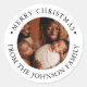 Pegatina Redonda Modern Round Photo Merry Christmas Greeting Family