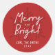 Pegatina Redonda Modern Script Merry & Bright Snowflakes Christmas