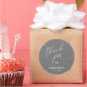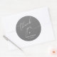 Modern Wedding minimalist Thank You Gifts Classic favor Round Sticker, in romantic script, cute little red heart, with bride and groom signature and wedding date, dark grey theme.