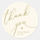 Modern Wedding minimalist Thank You Gifts Classic favor Round Sticker, in romantic script, cute little heart, with bride and groom signature and wedding date, yellow gold theme.