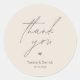 Modern Wedding minimalist Thank You Gifts Classic favor Round Sticker, in romantic script, cute little heart, with bride and groom signature and wedding date, in cream grey theme.