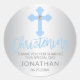 Pegatina Redonda Moderna Bebé Cruz Azul Christening Boy Gracias