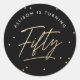 Pegatina Redonda Moderna caligrafía de oro negro 50 cumpleaños