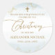 Moderno Blue Gold Cross Boy Christening Classic Round Pegatina