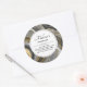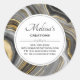 Pegatinas de negocios personalizados. Diseñado con un diseño abstracto con un patrón mineral geodésico agate. Giro dorado, gris, blanco y negro que forman elegantes olas de color. Ideal para transmitir un aire de clase y elegancia. Un círculo blanco con un borde gris delgado sobre la parte superior con el texto dentro.