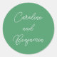 Escritura a mano moderna de estilo Boda nombra Pegatina redondo clásico en Kelly Green