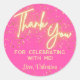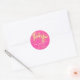 Pegatina Redonda Moderna Girly Hot Pink Neon Glow Gracias Script