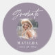 Pegatina Redonda Moderna graduación elegante de escritura púrpura f