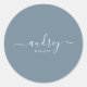 Pegatina Redonda moderna Tipografía de firma azul polvoriento simpl
