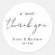 Expresar gratitud con nuestro "Modern Minimalista elegante matrimonio personalizado gracias Pegatina redondo clásico". Cada pegatina combina la elegancia contemporánea con un toque personalizado, creando una nota de agradecimiento a la moda por sus favores matrimoniales. Personalizar con tus nombres o fecha de boda por un sincero tacto que hace eco de tu estilo único. Más que un pegatina, es un símbolo de apreciación, convirtiendo las gracias en expresiones personalizadas de gratitud. Eleva tus momentos post-celebración con este pegatina especial, donde el minimalismo moderno se encuentra con el encanto personalizado en un gesto de agradecimiento atemporal.